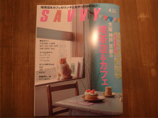 SAVVY4月号×カフェケシパール Category:ケシパール日記 Date:2012年02月23日 こんばんは。 ナツパールです☆ 今日はちょっとお知らせです。 本日2月23日発売の 「SAVVY 4月号〜大阪•神戸•京都 喫茶店&カフェ〜」で ケシパールのチーズケーキが紹介されました! 「SAVVY」は関西のオシャレな女性向けの雑誌です♡ 機会があれば 是非手に取ってみて下さい☆ ではまた☆ [9回]PR