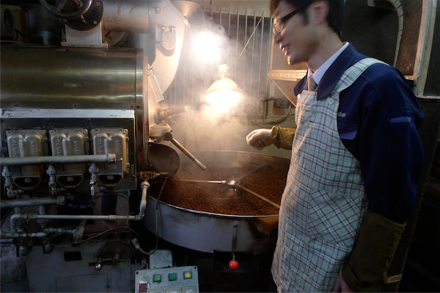 神戸中村コーヒー見学日記 1 Category:ケシパール日記 Date:2013年01月09日 こんばんは。 ナツパールです。 ケシパールと言えば、 チーズケーキと珈琲。 そんなケシパールに いつも美味しいコーヒー豆を届けてくれるのが 「神戸中村珈琲」さんです。 実は昨年11月、 会社にお邪魔して、 焙煎工場を見学させてもらいました☆ すっかり遅くなってしまいましたが、 今日はその見学日記です(´ω`)ノ 新開地駅からてくてく歩いていると、 公園の向かいに「神戸中村珈琲」の 煙突が見えます。 煙突が目印。レトロな風合い感。 挙動不審に 工場周辺をうろついていると(なんかすみません)、 いつも豆を届けてくれるお兄さんが気づいてくれて、 そのまま焙煎している社長の元へ。 笑顔がカワイイお兄さん 工場では社長が自ら、 毎日丁寧に焙煎しています。 社長こんにちは! とても真剣。 そして、 とてもカワイイエプロン。 照れる社長。 いろんな豆が置いてある倉庫も見せてもらいました☆ 豆が麻袋に入っていっぱい!! ここからは焙煎の様子です。 機械の説明が入るのでわかりにくいかもです(汗) 「ファイヤー48」と社長に呼ばれている焙煎マシン。 ガス火の上に、樽型の容器があり、 それが豆を入れた状態で ぐるぐると回転。 ファイヤー48図解 焙煎が進んでくると、 豆がはじける音が聞こえます。 ぱちぱち。 たまに社長が中を確認して、 「あと20秒くらいかなあ」 とか言います(悪意は無いです♡) こうやって丁寧に直火焙煎された豆が、 いよいよ出来上がります。 長くなるので その様子は次回の見学日記で♩ ではでは今日はこの辺で。 明日から営業再開です! 長期に渡るお休み、 ご不便おかけしました。 明日からまたよろしくお願いします(´▽`) [6回]PR