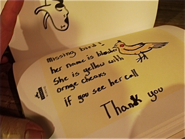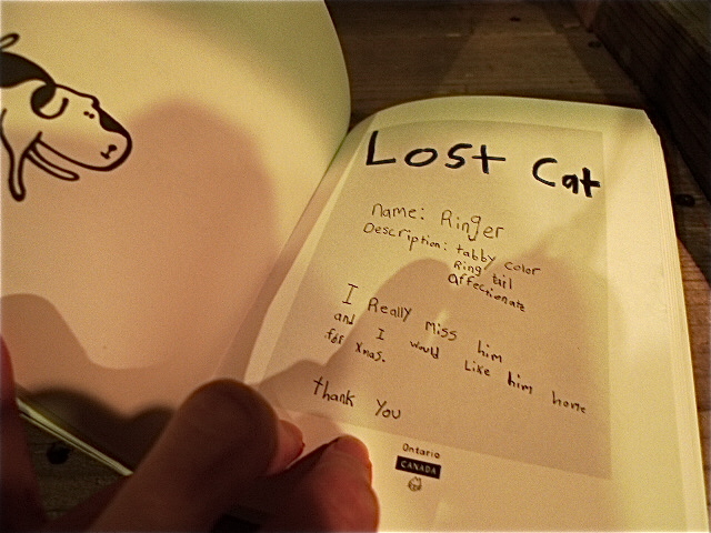 ケシパール文庫『LOST』 Category:ケシパール日記 Date:2013年02月08日 こんばんは。ナツパールです。最初に臨時休業のお知らせです。 2月12日(火)~15日(金)を、 勝手ながら臨時休業とさせて頂きます。 都合により、当面の間、特に平日は不規則な営業となります。今後もTwitterや当ブログにて、 営業の予定が分かり次第お知らせ致しますので、 ご確認の上、ご来店願います。さて、昨日に引き続き、ケシパール文庫のご紹介です。『LOST』なんとも言えないフォルムのわんちゃんの表紙。実はこの本、世界中の「ペットを探しています」張り紙を集めたものなんです!!ユニーク!!!犬や猫は勿論、ネズミや蛇など、いなくなってしまったいろいろなペット。そのペットに対する愛と、「見つけたい」という強い思いが伝わって来て、なんだかちょっと切なくなります。どのくらいの子が飼い主さんのところに戻ったのかな。この『LOST』に載っている張り紙、一枚一枚にどこの張り紙かが添えられています。地域毎のカラーがでていて、なかなか興味深いですよ。ちなみにコレはカナダのもの。是非開いてみて下さい☆日本のペット発見率は、他の国に比べて高いかも。ではでは今日はこの辺で。素敵な三連休を☆ [4回]PR