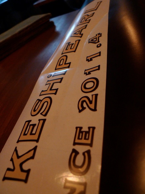飾り棚の完成を祝うブログ Category:DIYカフェ Date:2013年02月21日 こんばんわ。タツパールです。いよいよ今週末からルーチカラリータさんのハンドメイドアクセサリー展示会が始まります。素敵な作品たちがブログで紹介されていて、楽しみになってしまいます。ケシパールも展示会に向けて準備を進めており、先日、(やっと)飾り棚が完成したので一足先にご紹介したいと思います。どーん!真ん中の段にケシパールのロゴをあしらったガラスケース風の扉をこしらえました!これは、なかなか良いんではないでしょうか(にやけ)暗さでごまかしてますが、よく見ると飾り枠部分が歪んでたり、扉と言いつつ、開くことは決してない扉風だったり。まあ、そんなこんなもありますが、頑張って作ったんです。では、頑張ったダイジェストを。作業風景1(枠の部分を作成)作業風景2(アクリル板に塗装した枠を貼付け)作業風景3(ロゴシール作成)作業風景4(ロゴ完成!)そう、頑張って作ったんです。写真の行程それぞれで、涙抜きでは語れないドラマが…(割愛)そんなこんなで完成を迎え、少し期待して、ナツパールにご意見を伺いました。「貴様の作る家具は基本的にでかすぎる。」とのお言葉。アリガトゴザイマス!この展示会に向けて、ちょっとしたオブジェもこさえました。こちらもまたご紹介したいと思います!では! [5回]PR