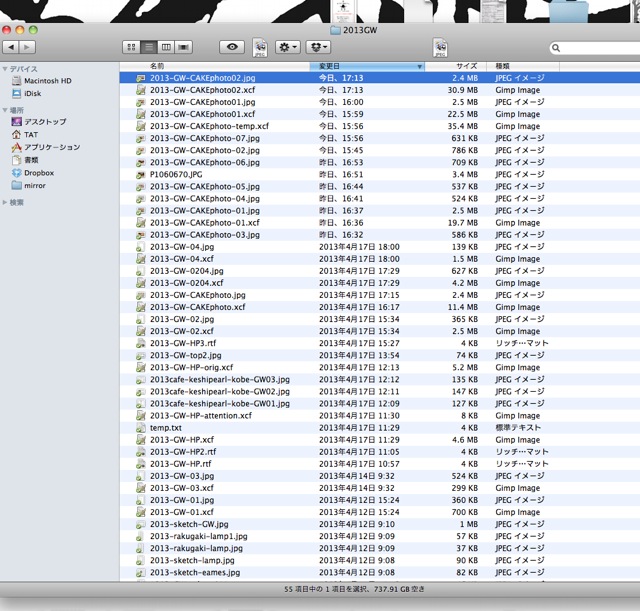 GWの準備と、アンティークのショーケースと、 Category:ケシパール日記 Date:2013年04月23日 こんばんわ。タツパールです。週末からはGWです!→営業内容・予定についてケシパールでは特別な営業スタイルになるので、専用のメニューブックやHPを作ったり、看板をデザインしたり。なかなか大変なことになっているGW用フォルダ。看板のデザインがなかなか降りてこないナツパール嬢。明日はGW前最後の休みになるので、準備で忙しくなることうけあい。☆ ☆ 3 <ひー今日はなんとなく、以前のブログにて紹介した、ケシパールのショーケースの制作過程をご紹介。黄金比に。黄色の静物。粋な枠。よくある定休日の風景。ステインと墨汁で。気付けば完成。写真だけ並べると、それだけでオシャレなカフェのブログっぽいですよね(笑)まあ、スマホ買い替えたばかりでうれしくて、(序盤だけ)写真をたくさん撮っていただけなのですが…。それにしても普段のブログのオシャレじゃなさよ!(凹!)ガンバレ俺たち! [7回]PR