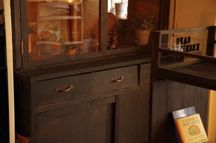 食器棚製作その4「完成〜自問編」 Category:DIYカフェ Date:2014年03月01日 こんばんは。タツパールです。ただいま雨の静カフェです。今日は(比較的)暇パールです。最近、静カフェの時間帯でないときに、席はたくさん埋まっていても静かに過ごして頂けることが多く、嬉しい限りです。特に雨の日に多いように感じます。雨にも関わらず、「ケシパールに行きたい!」と思って下さる方は、ケシパールならではの雰囲気も大事にして頂けるんでしょうね。さて、いつになく真面目なトーンのブログですが、恒例(?)の食器棚完成版の紹介に移りたいと思います。 できました。食器棚。収まりが良すぎるせいで小さく見えがちですが、かなりでかいです。幅1.4m x 高さ1.9mくらい。せっかく大きいの作ったのに、小さく見えるなんて損ですね。勿論、側面や裏面も塗装してるんですよ。見えないですけどね。損ですよね。ええ。それはもう、裏面のほうがきれいなくらい。 どの形にするか1週間は悩んだ真鍮の取っ手。 引き出し。静カフェ中に灯す(はずなのに、よく忘れる)キャンドル。 棚の中にはアンティークの照明。船舶用らしいです。なかなかオシャレになったんではないでしょうか?写真からビンビン伝わるものがありませんか?そう。一眼レフを手に入れました。イエス! 食器棚に映る影。それは、猿のモノマネをしているわけではなく、赤塚不二夫先生の名ギャグ「シェー」でもなく、まだ、どうやってカメラを縦に持てばいいのか分からない私の姿。脇が開いて、体が傾いた、私の姿。ありのままの世界が放つ、一瞬のきらめき。日常から切り抜いただけの情景が描く、美しさと儚さ。「美しいものだけにあふれた世界などない…。」私の期待はもろくも崩れ去りました。一眼レフが映し出してくれた、私自身の姿によって。なにが言いたいのか自問してしまいますが、あまりの動揺に一人称が変わってますが、一眼レフ、いいです。これから腕を磨きましょう。まだ使いこなせてないですが、ナツパールが、さすがのセンスで撮った写真を締めに筆を置きたいと思います。 そういえば、食器棚にもこんなショップロゴをデザインしたいと考えてます。(が、しばらく先になりそうな予感。というか確信。) [7回]PR