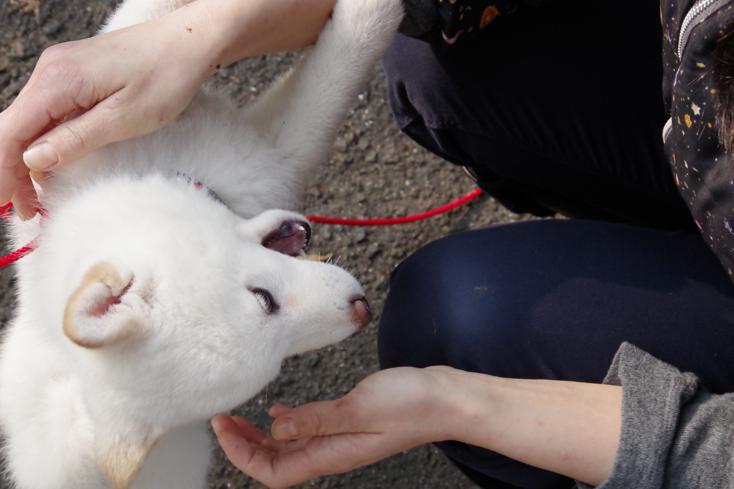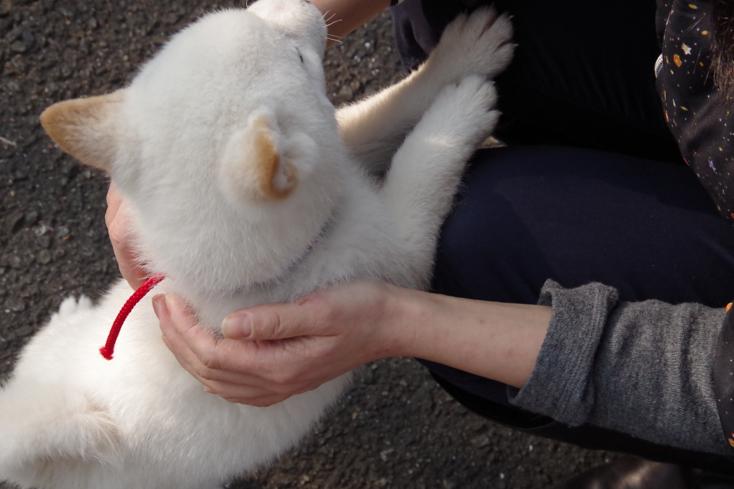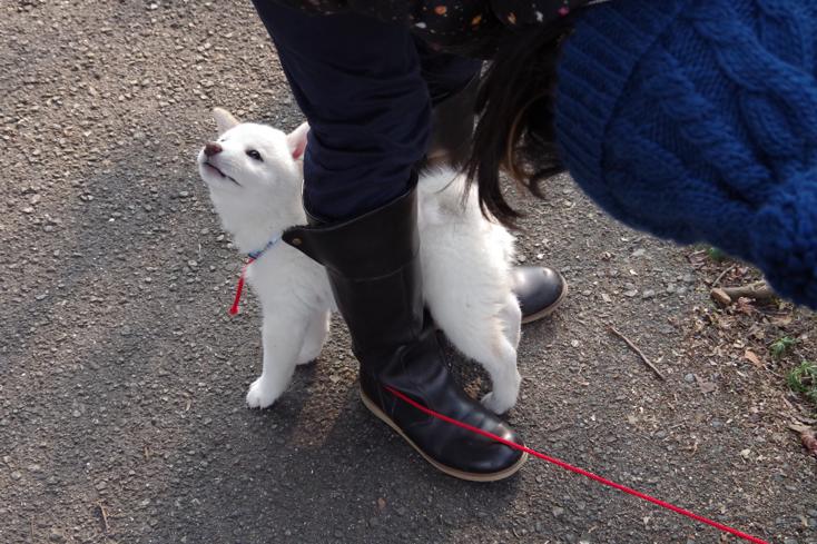 近所の子犬(羊色の子犬)と戯れるナツパール