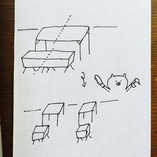 そのうち1つを、半分に割って2名様テーブル2つにしました。