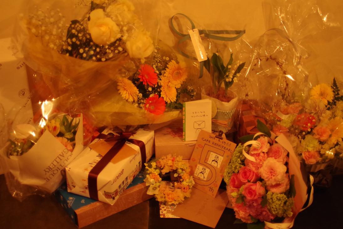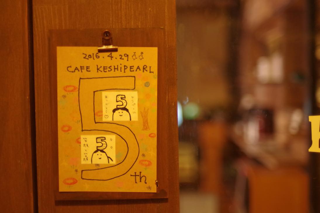 カフェケシパール5周年を迎えて Category:プロローグ Date:2016年04月30日 2011年、4月29日にオープンしてから5年。 本日、 カフェケシパールは5周年という大きな節目を迎えました。 (と書いてから、もう3日も過ぎてしまいました。すみません。 そして、ありがとうございます。それほど忙しくさせて頂いてる特別営業です。) オープンと同時に沢山の常連様が駆けつけてくださり、 あっという間にお花がいっぱいになって、 それが閉店まで続いて、 なんだか夢でも見ているかのような ふわふわした時間が過ぎていきました。 お祝いのメッセージやプレゼントを用意して下さったお客様。 わざわざお祝いに駆けつけてくれた友人。 「こんにちは。」 「ごちそうさま。」 「また来ます♩」 という、いつものご挨拶に 「おめでとうございます!」を添えてくれる常連様。 長く通って下さっているお客様の中には、 涙ぐんで成長を喜んでくれる方も。 皆様の気持ちや笑顔が、 本当に嬉しくて幸せで。 成長した我が子「ケシパール」が、 皆に祝福されていることを心から感じて、 なんか「娘を嫁にやるような気持ち」になってしまいました。笑 それはもう、 手間も人生もかけて、育てた子ですから。 そんなケシパールを大切に思ってくださって、 支えてくださって、 本当にありがとうございます。 心から感謝しています。 5年というと、近いようで遠く、 オープン当初から想像していた未来とは 今、 いい意味で大きく異なる世界を見ています。 この5年の間に、 何もないところからケシパールを生み出し、 私たち夫婦だけのものだったケシパールが、 私たちだけのものでないものに変わっていった感覚を経験し、 ケシパールを一緒に作っていきたいという仲間に恵まれ、 そして今、 周りから見た「カフェケシパール」は、 きっともう最初の頃とは全く別の世界なんだなと感じています。 それはとてもすごいことで、 私たち夫婦二人だけでは到底到達できなかった世界で。 でもちょっと寂しかったりもする。 そんな5周年。 3周年以降は特に、 私たちだけだった当時とは形を変えて、やり方を変えて、 がむしゃらに頑張ってきました。→「三周年のブログ」 最前線で「全てのお客様と直接」関わっていた頃とは違い、 面とむかってお話しするチャンスがぐっと減りました。 「こんにちは」という挨拶ひとつ、 常連さまと扉越しに会釈する瞬間ひとつ、 オーダーの時に交わす、他愛も無い一言でさえ、 チャンスの少ない私たちとっては大きな意味を持つ場面になります。 忙しい最中、その貴重な”ワンチャンス”が 今まで通りには行かず、自分の思うようにならず、 至らないところを日々自覚しては、 悔しい思いをすることが多かった気がします。 見えていたものが見えなくなって、 聞こえていたものが聞けなくなって、 何だか寂しかったり、自信を無くしたり。 でも、 時にはお客様の笑顔に励まされながら 時には私たちのもとで働く、 ケシメイツ(スタッフ)の楽しそうな姿に励まされながら、 気がつくとまた純粋に、 お客様の笑顔そのものを楽しめるようになっていました。 そして、やってきた5周年。 開業準備を始めた頃の、 養生シートを張っていたトイレ。 開店当初、壁一面に備え付けられていた黒い鏡面の棚。 オープンだったバースペース。 レジ前に置いていたパキラの木。 朝も夜も、 暑い日も寒い日も、 営業日も定休日も、 沢山の時間を過ごしてきたこの場所。 切り貼りして塗り替えて、 つぎはぎして組み立てていった、 メニューと内装、 そして、 「カフェケシパール」というお店。 「人生を削って、 カフェを作っている」と、 私たちはよく冗談で言い合うのですが、 私たちにとっては まさにそんな風にして、 今のケシパールがあるのだと思います。 ただの板を並べただけだった窓側カウンター席のテーブルも、 つるつるだった床も、 事務所仕様だった階段も、 オープン当初、 ガラガラだった店内も、 今ではほとんどのものが、 変わってしまったけれど、 今の「ケシパール」のどの部分を切り取っても、 強烈に思い出が蘇り、 懐かしさがこみ上げてくるような、 そしてその変化や成長が、 じんわりと嬉しく、温かく思えるような。 そんな場所。 自分たちの手で、 お店を作ってきた私たちだからこその 感覚なのかもしれません。 でも、この場所へ来る様々な人にとっても、 初めてでもどこか懐かしく、温かく、 いつ来ても、 何か違っていても、変わっていても、 いつも同じものが流れているような、 そんな特別な場所でありたい。 たとえば学び舎の。 たとえば故郷の。 たとえば山や海の。 魂に強烈にぐっと引っかかるような、 なにか。 「懐かしさ」や「親しみやすさ」、 あるいは、 「歴史」や「変遷」といった、 過去からつながった物語が感じられるような、 そんな場所。 今、フロアを見渡せば、 私たちの「笑顔で笑顔を作る」という信念に共感し、 自分の笑顔でお客様を笑顔に