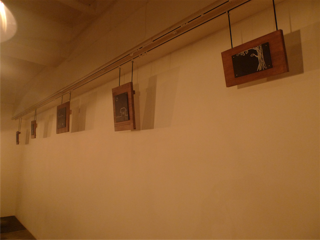 こちらは真っ白な壁につるされたミニ黒板です。