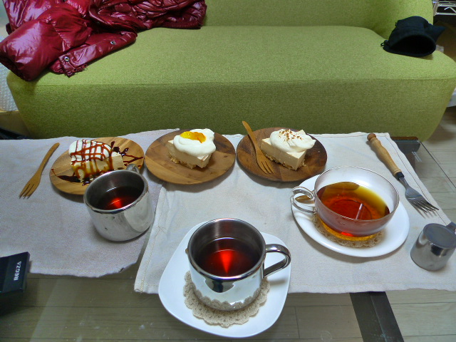 スペシャルゲスト! Category:カフェ開業準備日記 Date:2011年04月10日 こんばん渡辺満里奈です。 嘘です。ナツパールです。 今日はスペシャルゲストが2人来てくれました。 美人(自称)の姉と、昨日もきてくれたT君です。 今日は姉が来るということだったので、ケーキを作って待っておりました。 ティータイムのメニューは •ラベンダーティー(ラベンダーと紅茶のブレンドです。) •アッサムミルクティーのレアチーズケーキ 右からメープルシナモン、オレンジ、カラメルソースがけ レアチーズに入れたアクセントのクッキーとシナモンがgoodです。 ゆっくりおやつを食べるって幸せですよね。 姉は私以上におしゃべりなので、作業はいつもの50倍くらい賑やかでした(笑) そしてT君は、先日紹介したソファ風ベンチの作製を手伝ってくれました! 見た目が本当にいかついので(いい意味で!)、 大工仕事がめっちゃ似合っててかっこ良かったです!(またお願いします!(笑)) そして自前のバイクで颯爽と帰っていくT君。 二人とも本当にありがとうございました。 そんな今日はのメニューは、レンズ豆と豚の煮込みです。 ほくほくのレンズ豆と、煮込まれた塩豚がご飯に合う☆ あとこちらはジェノバポテト。 ジェノバソースをポテトに絡めて焼き付けてあります。 これは私が大好きな一品です。 ソファ風ベンチの完成報告は、布の到着が遅れていて もう少し後になりそう。。。 気がつけば四月も三分の一が終わったのですね。 早い! オープンに向けてペースあげて頑張ります! ではではまた☆ [5回]PR